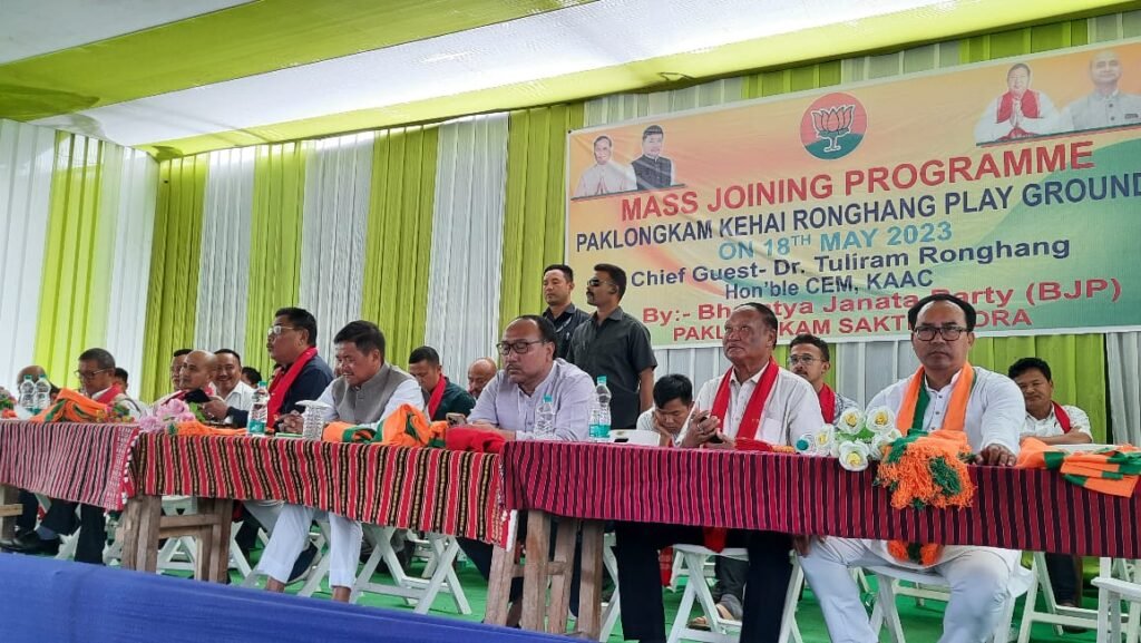 DONGMUKAK, May 18: With the aim of fortifying its reach across the district, a mass joining meeting of the ruling BJP was held at Kehai Ronghang playground in Paklongkam under the Korkanthi MAC constituency here today. Karbi Anglong Autonomous Council CEM Dr. Tuliram Ronghang attended the meeting.