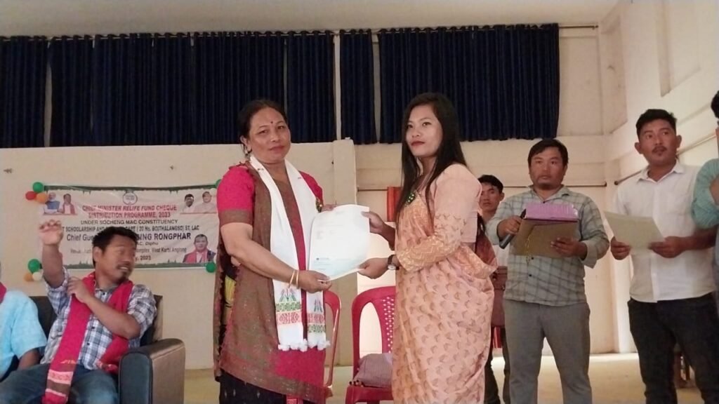 HAMREN, May 20: The Chief Minister Relief Fund Cheque for the college students and needy patients of Hamren was distributed today at a function held at the Hamren Habe Sports Complex Dengja Hall.