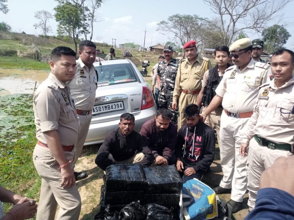 The ganja was recovered during the search of the car which had two passengers. Following the recovery of the ganja, the three occupants including the driver identified as Mohibur Rahman (30 yrs), s/o: Md. Bhaiti Ali, and two passengers identified as Md. Dildar Hussain (29 years), s/o Md Tajamul Hussain and Babul Shiekh (40 years), s/o of Lt. Abdul Salam all the three are residents of Jajori near Saru Masjid, Jajori, Morigaon, Assam, police informed.