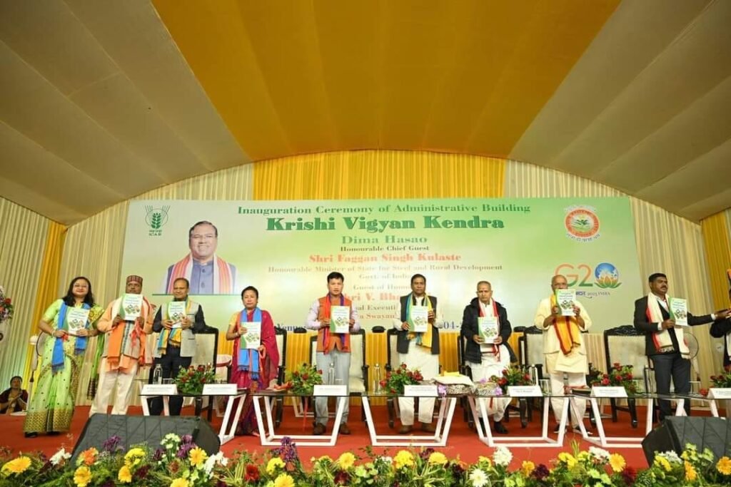 HAFLONG, Apr 03: The newly constructed Administrative Building of Krishi Vigyan Kendra, Dima Hasao was inaugurated on Sunday by Faggan Singh Kulaste, Minister of State for Steel and Rural Development Govt. of India. The inauguration event was attended by V. Bhagaiah, National Executive Member, Rashtriya Swayamsevak Sangh, Debolal Gorlosa, chief executive member, Dima Hasao Autonomous Council, Ranu Langthasa, chairperson DHAC, Dr. Bidyut Chandan Deka, vice chancellor Assam Agriculture University, Dr. Kadirvel Govindasamy, Director, ICAR-ATARI Zone vi. The office is located at Miyungkhro, Dima Hasao on Sunday.