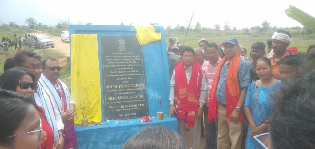PHELANGPI, Apr 25: MLA Rupsing Teron on Monday laid foundation stone for the construction of PWD road connecting Jiriso Jeng Kro village under the PWD Kheroni Sub Division inside West Karbi Anglong district. The proposed road is being sanctioned under the Mukhyamantrir Pakipath Nirman Achani (MPNA) scheme.