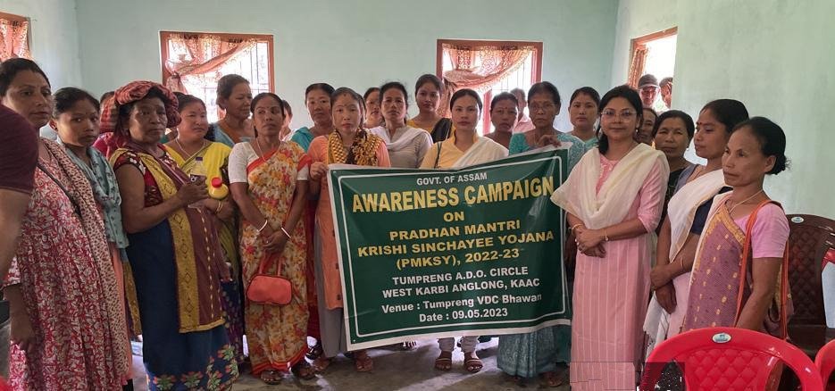 DIPHU, May 09:An awareness camp on Pradhan Mantri Krishi Sinchayee Yojana (PMKSY) for the 2022-23 was held today at Tumpreng VDC Bhawan, Tumpreng ADO Circle, West Karbi Anglong District. This was informed through a press statement by West Karbi Anglong Department of Agriculture media expert Dolly Banerjee here today.
