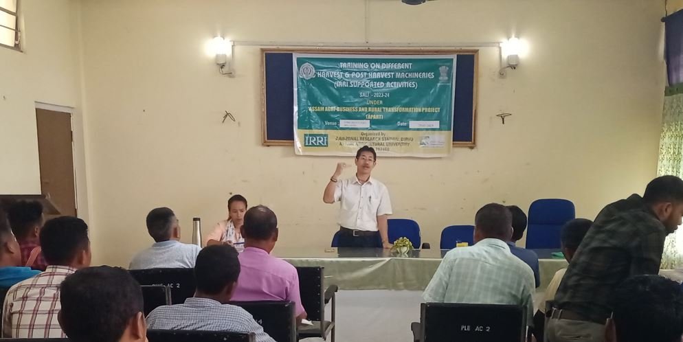 DIPHU, May 23: A training and demonstration on post harvest machinery was conducted at AAU- Zonal Research Station, Diphu under APART on May 23. Dr. K.D Singha, Chief Scientist, Anjela Deka Project Associate, APART, Mirlong Bey, Research Technician, IRRI, Samiran Das, Research Technician, APART and a total of 30 farmers from different blocks of Karbi Anglong district were present in the training programme.
