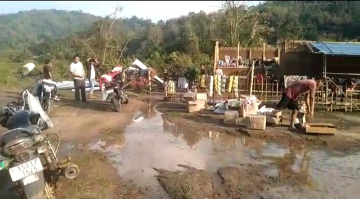 DOLAMARA, Apr 04: The heavy rain and storm that occurred on April 2, destroyed a shop jointly run by Sing Tokbi and Rangmukrang Terang. This had destroyed more than 5 lakhs worth of commodities in the shop. The shop is located in Tarapung, in the interior part of Nilip constituency. This shop destroyed by the storm was the main supplier of basic essential commodities to the residents of the Tarapung-Borpung area. Its destruction is a big blow.